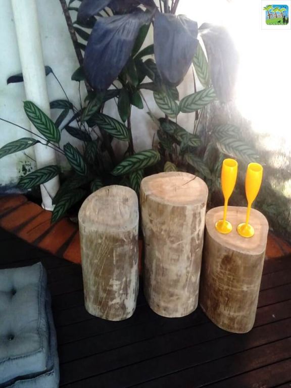 Banquinhos de tronco de eucalipto, tratado e impermeabilizado, produtos Tratart, solicito orçamento.